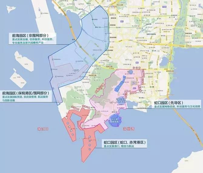 2015年,前海升级为前海蛇口自贸区。片区总面积28.2平方公里,分为前海区块(15平方公里,含前海湾保税港区3.71平方公里)和蛇口区块(13.2平方公里)。