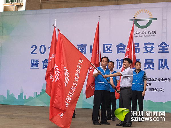 会上,市市场和质量监管委南山局局长助理陈柯给8支食品药品安全协管员队伍授旗。根据区委、区政府统一部署,南山8个街道均成立了食药协管员队伍,覆盖全区101个社区,依托街道、社区网格化管理,重点破解基层食药安全执法力量不足,强化隐患排查和食品药品安全宣传,利用社区贴近群众的优势,夯实基层食药安全群众基础,提升创建知晓率和市民对食品安全状况满意度。上周,区食药安办、南山食药局已经对协管员组织了集中业务培训,7月1日起正式到岗履职,为食品药品协管增添新力军。