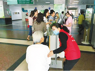 在深圳,志愿服务是文明城市创建工作的重要组成部分,体现城市的软实力和温度。图为深圳市人民医院U站,志愿者为患者热心服务。市人民医院供图
