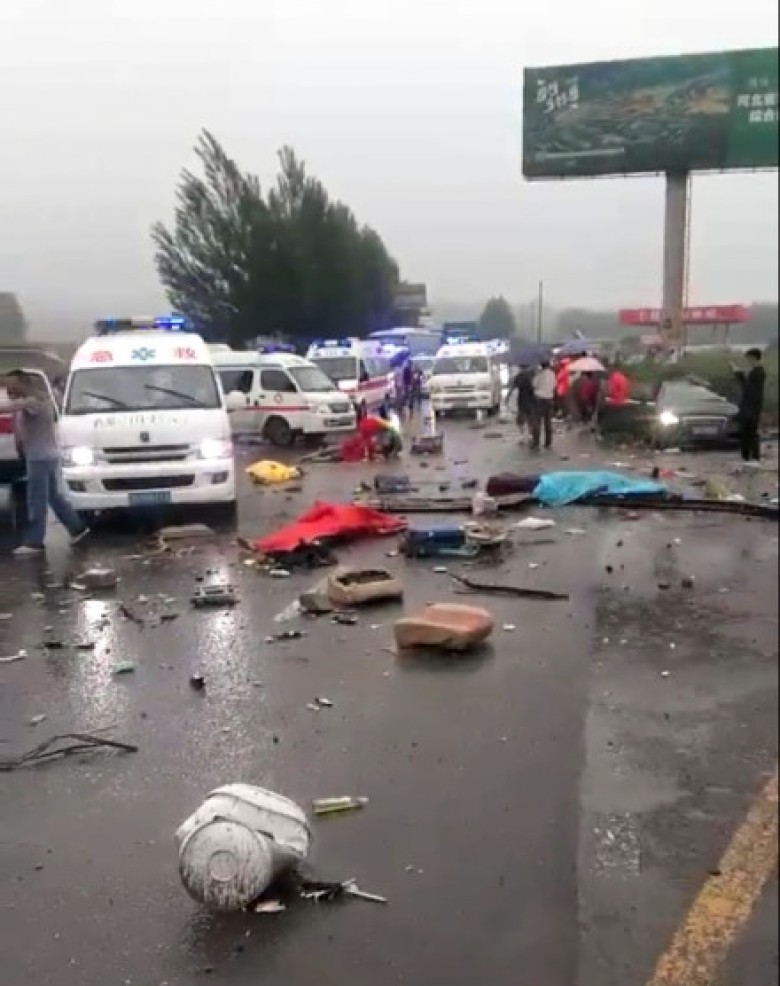 经初步核实,截至目前事故造成6人当场遇难,3人在抢救过程中死亡,28人受伤。目前伤者正在围场县医院和该县中医院进行全力救治。肇事大货车司机受重伤,正在抢救中。