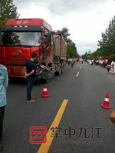 而在道路另一侧,一辆红色大货车驾驶位一侧被撞,受损程度相对较轻。