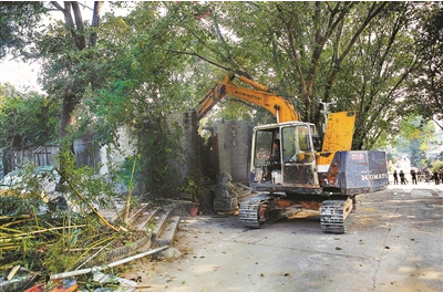 花卉世界已拆除违建面积达8万平方米。图为清拆现场。