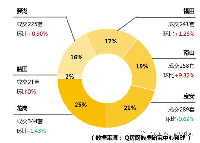 上周除了福田区报价无变动以外,其它六区业主报价普跌,龙华跌幅达到1.2%。