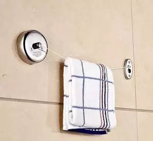 拉出绳子,将另一头固定在对面的墙上,就可以晾衣服了。