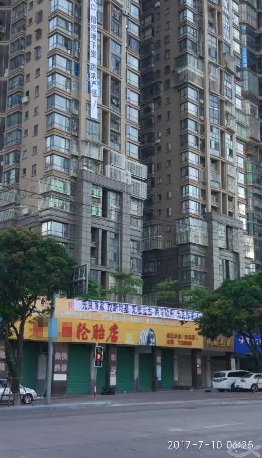 近日,厦门市古龙御园小区的居民王女士从小区业主群里得知,小区两个商家瞒着物业和居民,偷偷在门店下方开挖300平地下室,破坏了9根承重柱,严重威胁楼房建筑安全。图文:如皋新闻网