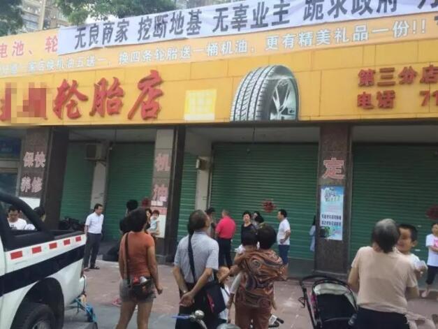 据该小区物业主任林先生介绍,3日晚上19点多,小区一位居民返回家中,发现一辆土方车停在老主顾轮胎店门口,里面装满泥土,正好挡住道路。居民感到十分奇怪,向物业反映,工作人员前往检查,发现这个秘密,并向有关部门反映。图为居民拉横幅维权。