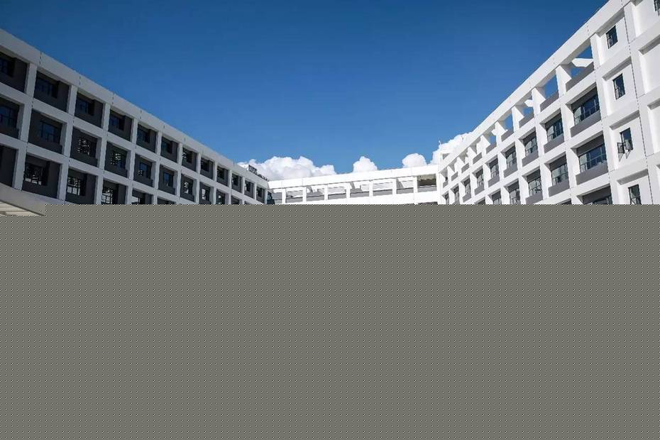 教学楼是大片的白色,玻璃倒映出蓝天白云,宛如白色丝绸上点缀的蓝翡翠。