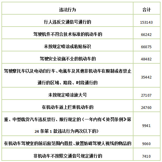 经过统计,2017年1至6月违反道路交通安全法律、法规,受到五次以上罚款处罚的有14240人,涉及到的违法行为有601338宗。