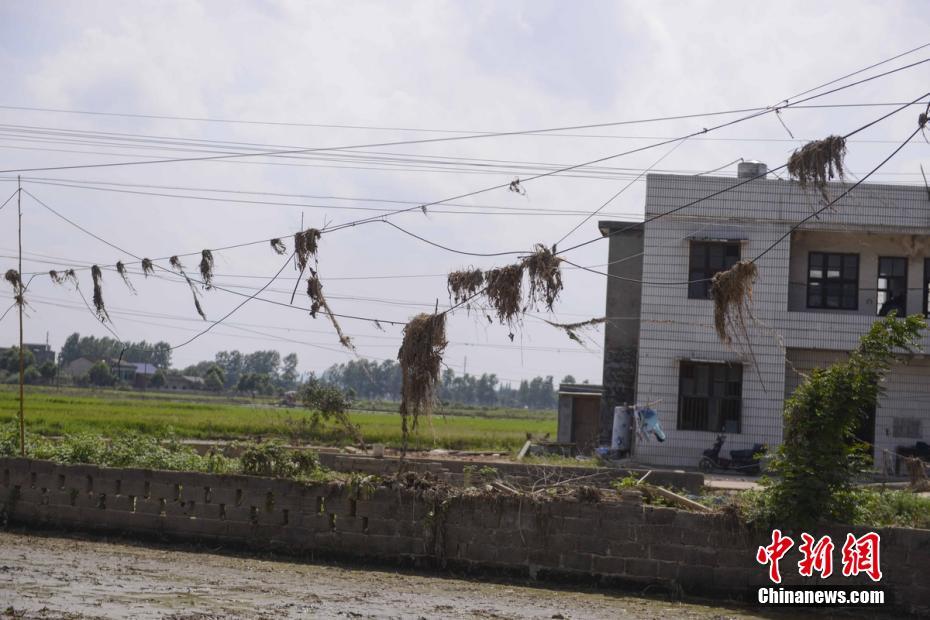 洪水退后,宁乡坝塘镇南田坪村的电线上挂满了各种水草。杨华峰 摄