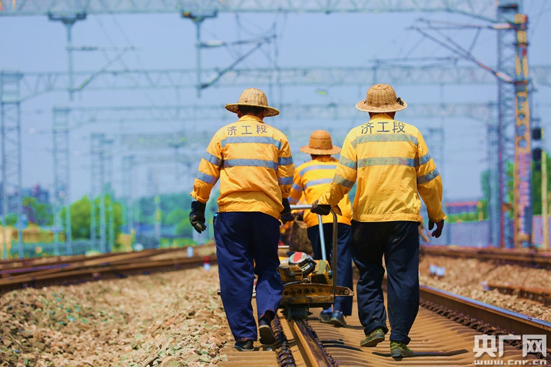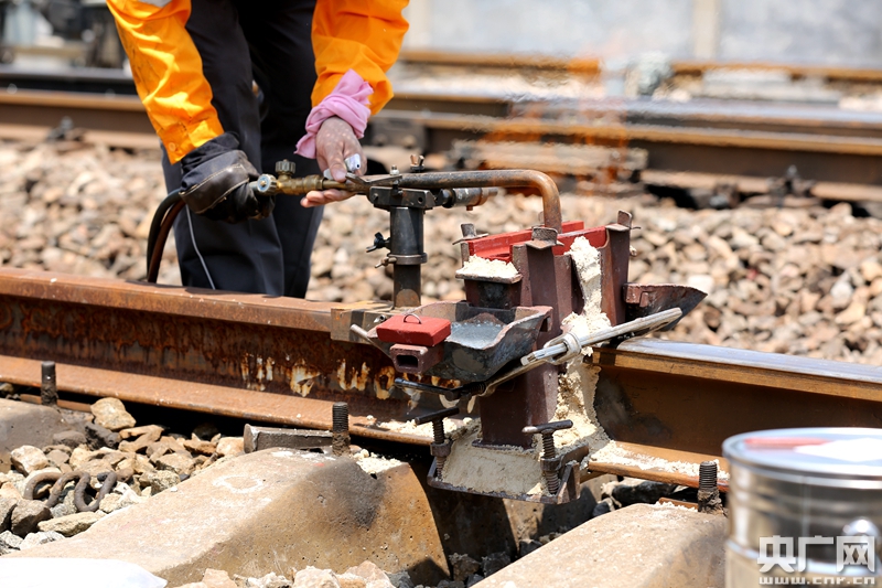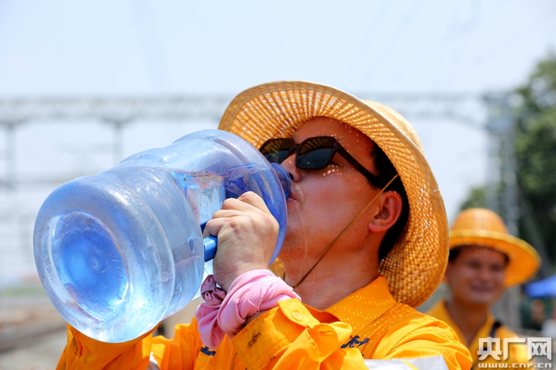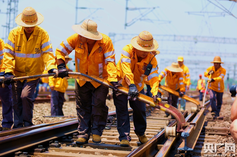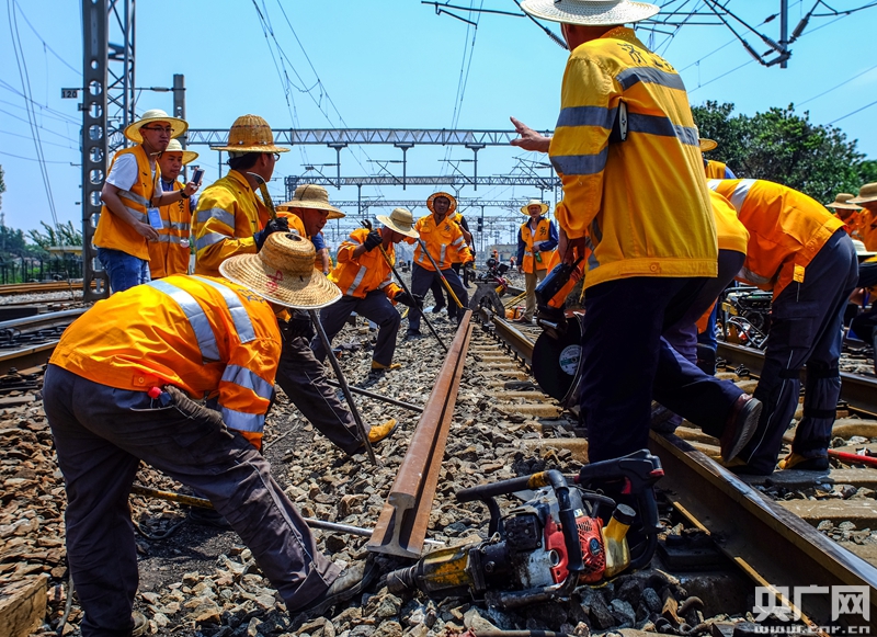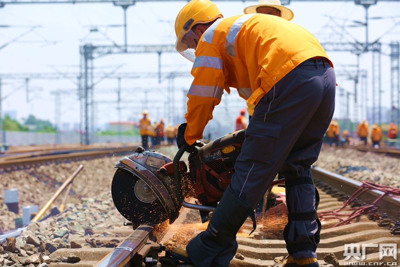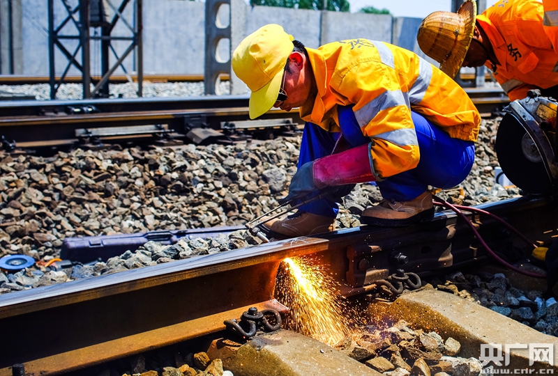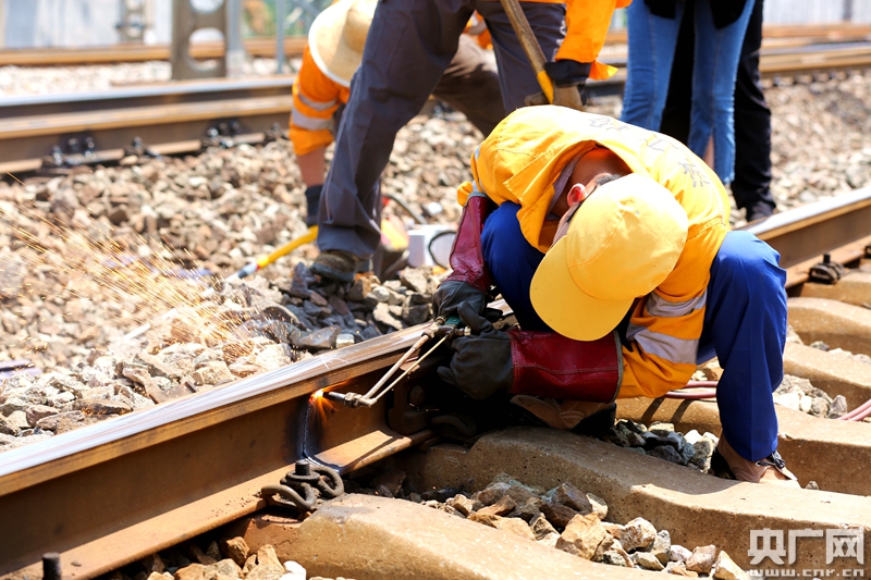 当列车平稳安全地在线路上滑过,当您在车厢里清凉地享受旅行,您可知道,有这么一群人,他们在烈日下开工了……2017年7月12日,入伏第一天,山东省德州市齐河的晏城火车站,晴。上午11点18分,温度已经攀升到40℃,钢轨温度达到50℃。济南铁路局济南工务段焊轨组的18名铁路焊接工,准备对京沪铁路北京方向一处伤损钢轨进行紧急更换。从刚刚走过去的一趟火车到下一趟火车到来,他们只有两个小时的“窗口期”,要完成一段9米长的受损钢轨的无缝替换:切割、更换以及2处焊头的焊接。高温烈日下,他们点燃1000℃的切割枪,然后把钢轨结合处加热到2000℃以上,确保焊接完美,他们戏称自己是高温下的“玩火人”。(记者柴安东 唐磊)