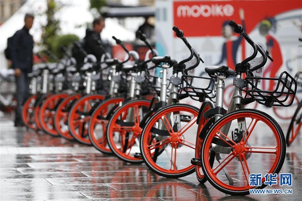这是6月29日在英国曼彻斯特拍摄的摩拜单车。新华社发(克雷格·布拉夫摄)