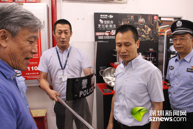 随后,检查队又来到家乐福(南头店),据工作人员介绍,每一个区域都放置了防暴器械,同时也会定期进行安保训练与消防培训。超市内共28名安保人员(其中16名内部安保、6名外部安保、6名保安公司人员),每一名安保都会使用防暴器械与消防用品。检查发现购物通道被货物堆积,导致通道过窄,并且逃生标识不醒目,曾湃表示,相关单位要严格执法,做到有备无患、未雨绸缪。消防设施要定期更换,安全通道一定要畅通,通道标识要清晰可见。多进行消防与防暴安全演练。