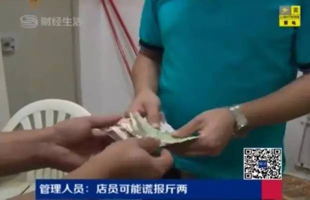 严先生和记者回来追问老板怎么只有八斤,老板支支吾吾的回答,显得牵强,底气不足。