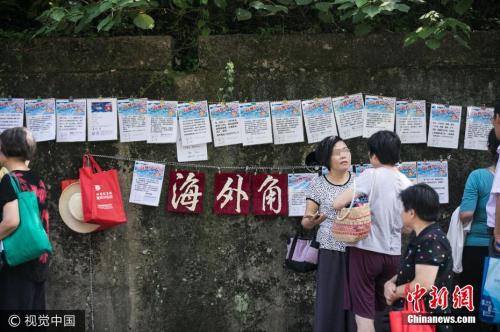 资料图:2017年7月15日,杭州一条马路两边,数百名大伯大妈前来“相亲”,现场还特别设置了海外学子的专区,贴着的大部分都是70后80后年轻人的信息。图片来源:视觉中国