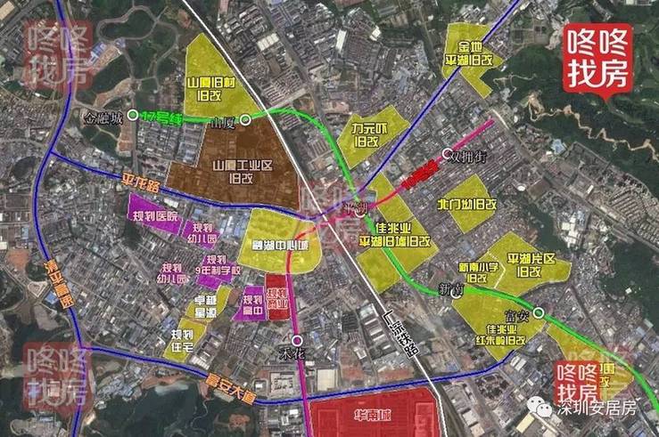 旧改统计,平湖片区目前大约有16个旧改项目,处于开发中或待开发状态。而在项目周边2公里范围内就有6个旧改,其中,包括佳兆业在平湖的,两个旧改项目,目前也已经恢复了工程。