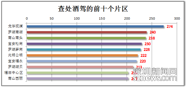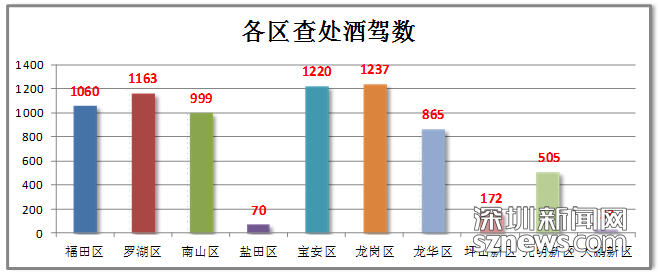 龙岗、罗湖、宝安区的酒驾查获数查处量居前三