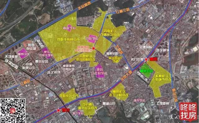 项目周边2公里范围内,旧改项目约有9个,且多数为住宅用地为主,其中四联排榜村旧改项目,拟拆迁重建面积更是达到65万㎡。