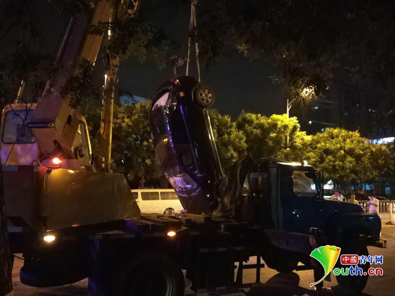 截止晚上11时37分,落入坑中的轿车已被吊车吊出。北京市海淀消防支队救援官兵告诉中国青年网记者,消防救援10点就已经结束了,其他的工作需要市政、应急等部门的处理。