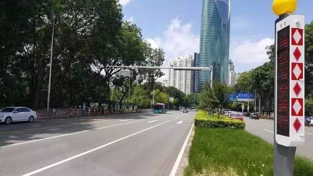深圳交警局在莲花路北大医院南门创新试点安装了一套非信号灯控制的人行过街斑马线路口交通安全设施(简称礼让“斑马线”设施)。该套设施是由地磁感应、行人过街多功能提示仪、简易条形提示屏和人行横道监控设备四部分组成。