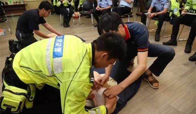 为了切实提高交警铁骑队员在一线执勤中面对交通事故现场等突发事件处置能够快速实施的有效医疗救护水平,在前期培训基础上,7月份交警支队再次组织800铁骑队员开展医疗救护知识培训,培训内容包括心肺复苏、异物卡喉、外伤的止血包扎、紧急翻转、中暑、低血糖等常见疾病的现场救护。