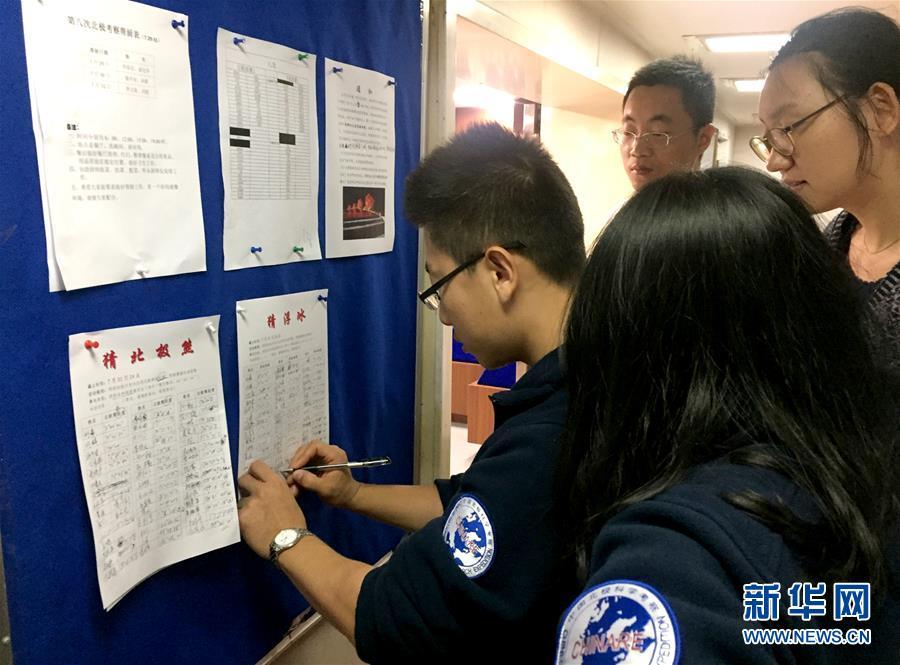 7月31日,科考队员在“雪龙”号上参加猜北极熊和猜浮冰比赛。