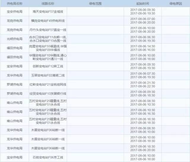 8月份深圳这些地方将继续停电 快来看看有没有你家