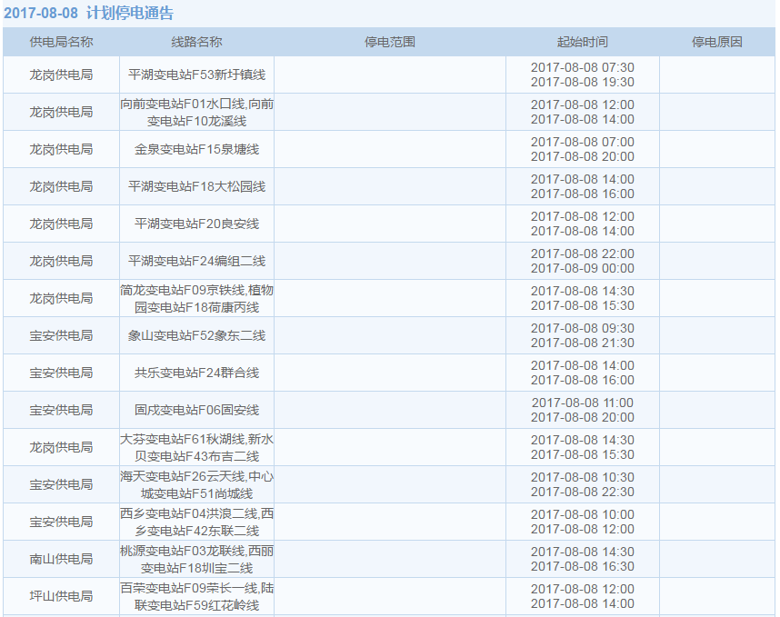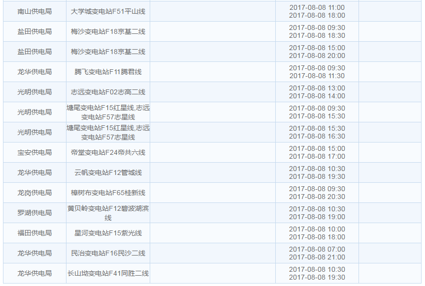8月份深圳这些地方将继续停电 快来看看有没有你家