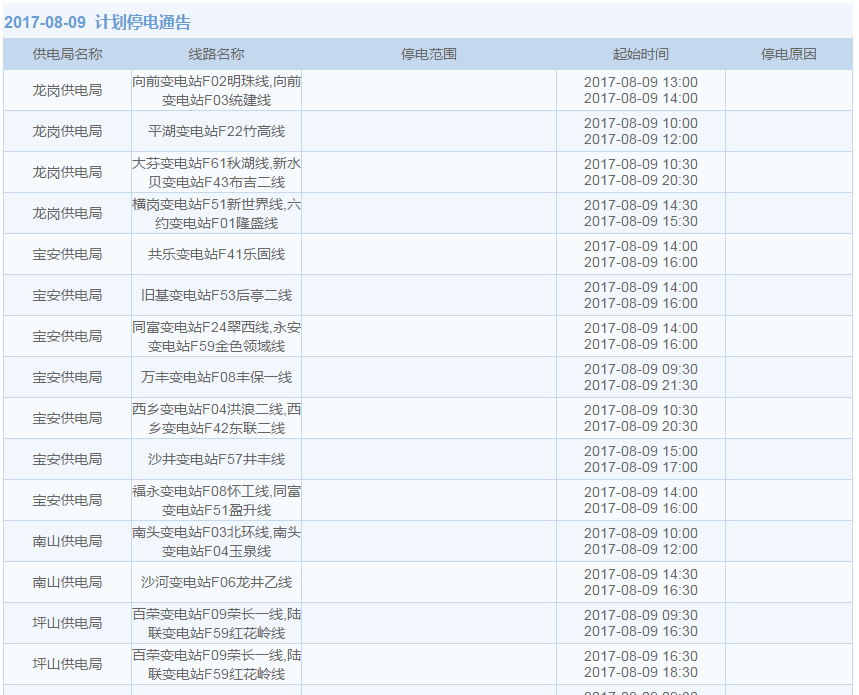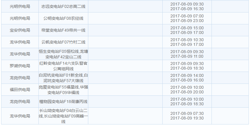 8月份深圳这些地方将继续停电 快来看看有没有你家