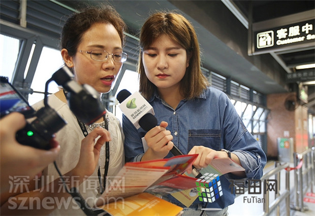 港铁(深圳)站务经理赵昉向记者介绍站内服务手册。