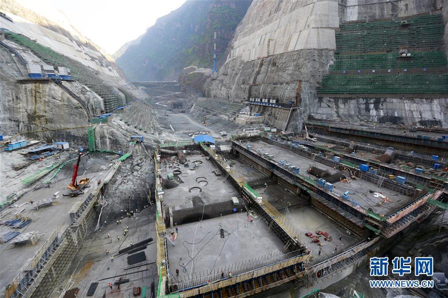 这是7月27日拍摄的白鹤滩水电站建设工地。 8月3日,全球在建装机规模最大水电站白鹤滩水电站进入主体工程全面建设阶段。白鹤滩水电站位于四川省宁南县和云南省巧家县境内的金沙江干流下游河段上,总装机规模达1600万千瓦,是仅次于三峡工程的世界第二大水电站。该工程由中国三峡集团承建,是国家能源战略布局“西电东送”的骨干电源点。新华社发(赵昀摄)