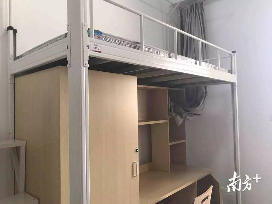 据介绍,男生住6楼,女生住7楼。现在为您揭开男生宿舍神秘面纱!宿舍是四人间的,上床下桌,学校会根据学生的身高定制床。