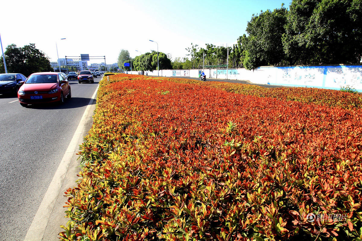 正常情况下,这些绿化带植物的叶子都是绿色的,但是在高温炙烤下,纷纷变成红色。即使是同一片叶子,也呈现出一半绿色、一半枯焦的现象。瑞昌/视觉中国