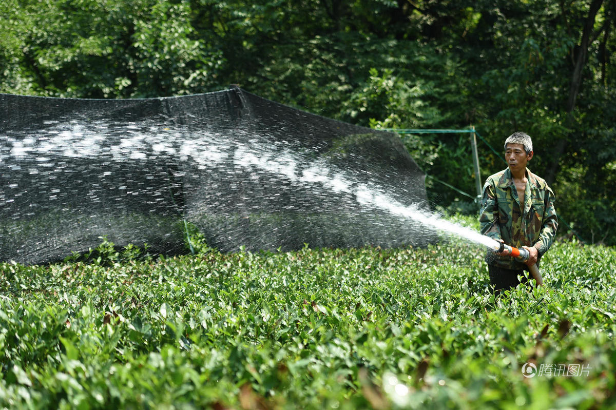 7月25日,杭州,茶农进行浇灌,防止旱更多茶树被烤焦。龙巍/视觉中国