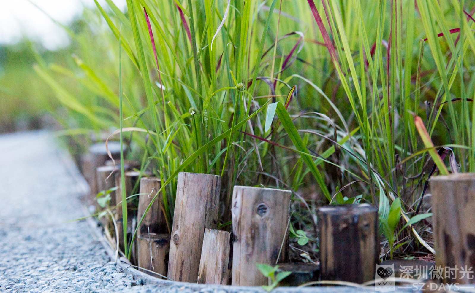 花圃的围栏是一截截长短不一的废弃木桩