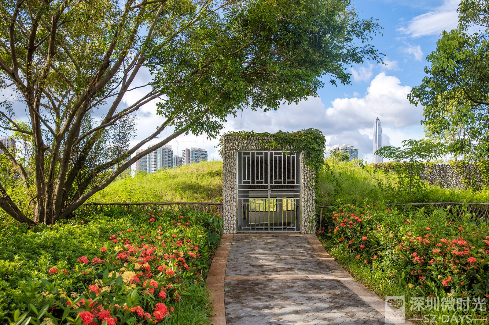 公园的东南边有一扇繁花簇拥小门