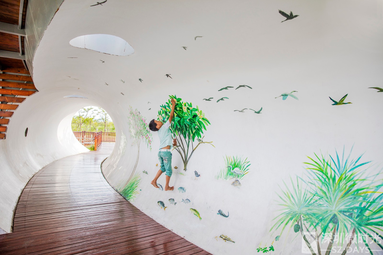 一边墙面是栩栩如生的红树林生态墙绘