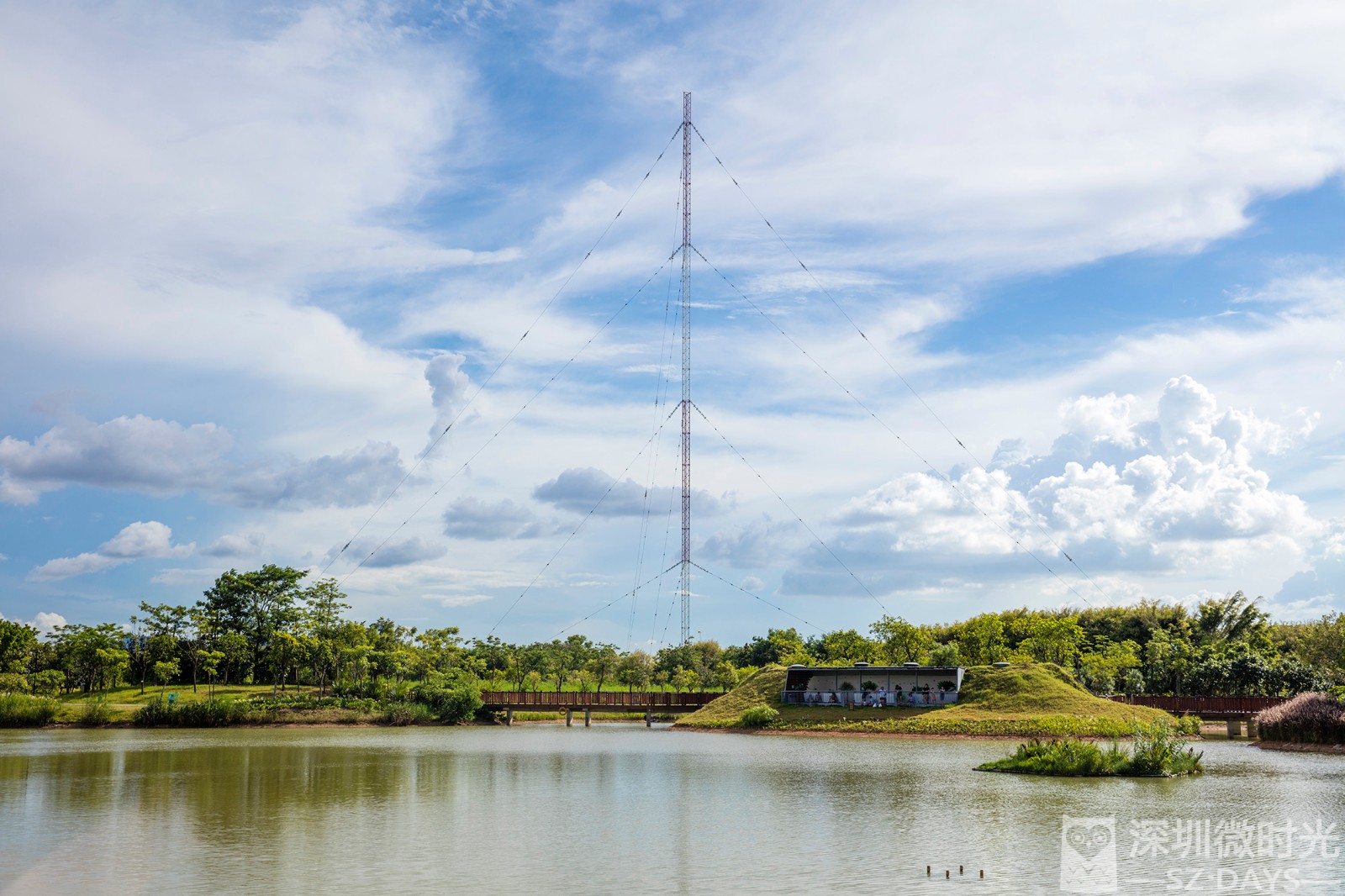 远处的电台发射塔十分醒目
