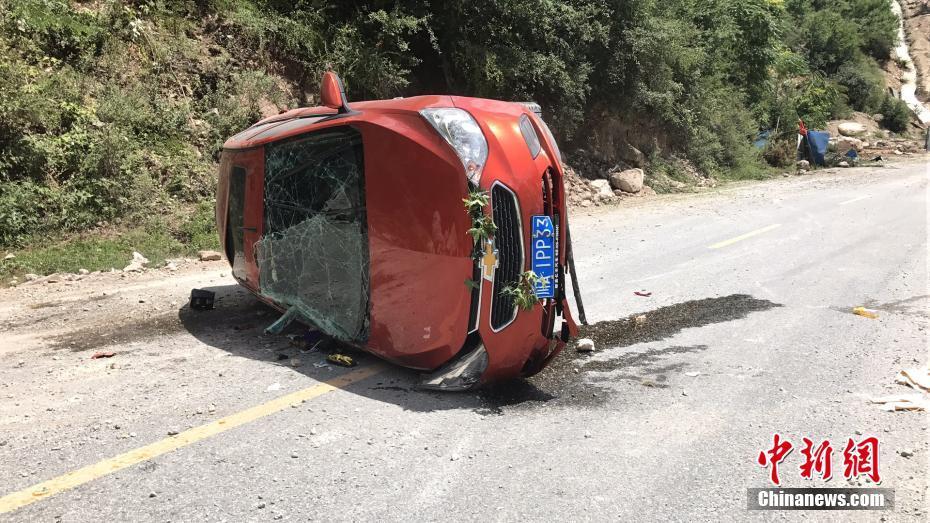 受损车辆横卧路上。 中新网记者 杨勇 摄