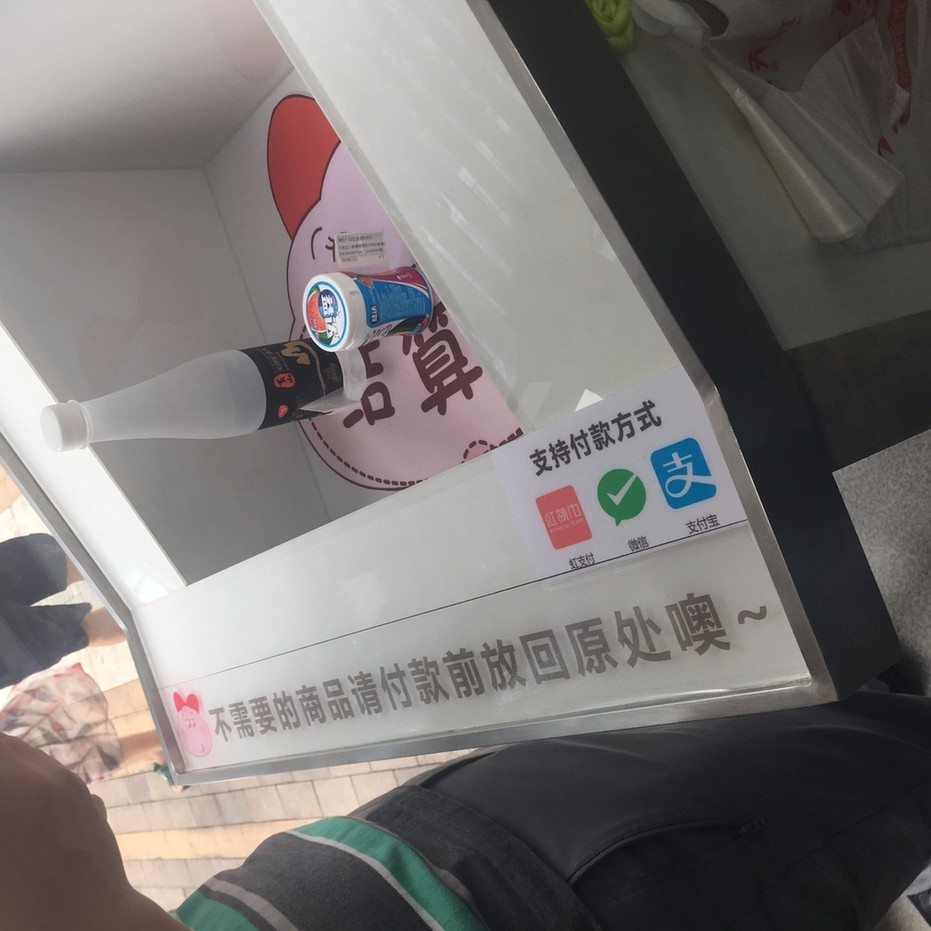 在付款的时候,将商品放入结算区内,机器会自动识别商品信息,识别成功之后选择支付宝,微信或红领巾APP付款即可。