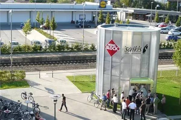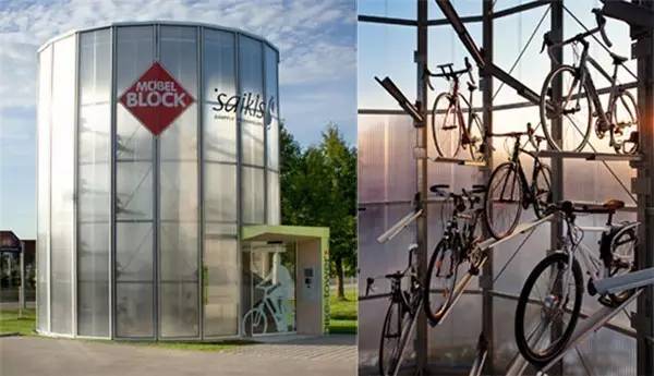 Biketower也是一个自动化自行车停车系统,占地只有30平方米,位于德国梅肯博伊伦火车站外,可存放112辆自行车,且利用太阳能作为动力能源。