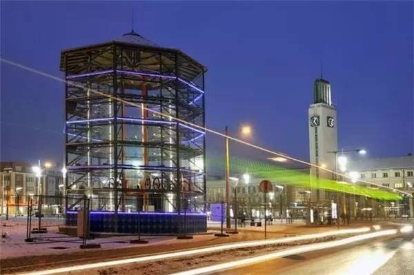 捷克赫拉德茨-克拉洛韦的一个地铁站附近建造的全自动自行车停车塔,采用玻璃墙结构,共有7层,可存放117辆自行车。用户只需借助一台售票机便可完成存取车全过程。