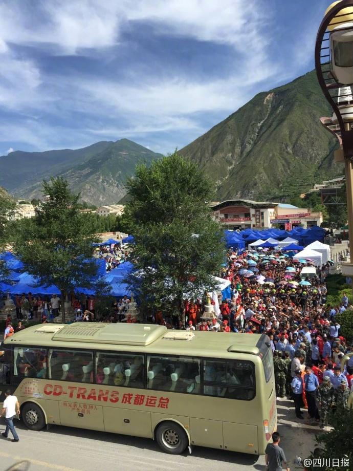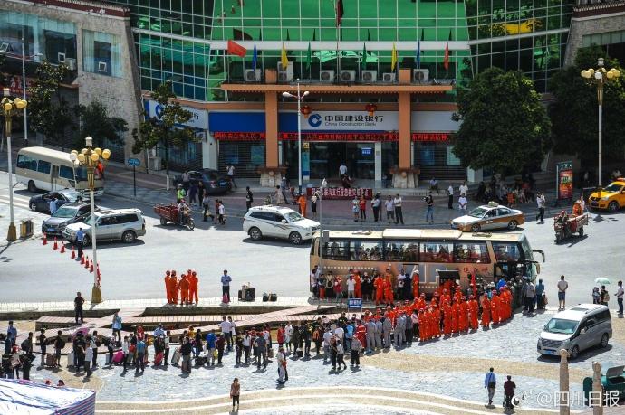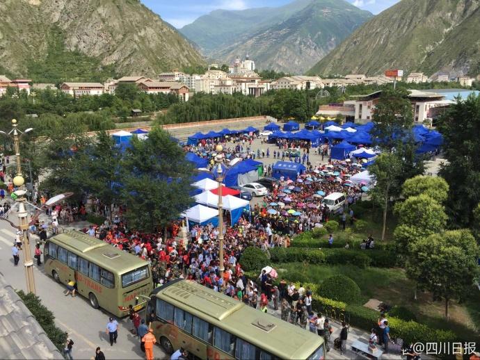 虽然景区和震中地区的旅客和民众已撤离完毕,但在九寨沟县城的广场临时安置点,依然有1800余人等待撤离。得知这一情况后,九寨沟县抗震救灾指挥部立刻组织了80辆大巴,安排民众撤离。来源:四川日报/中国新闻网
