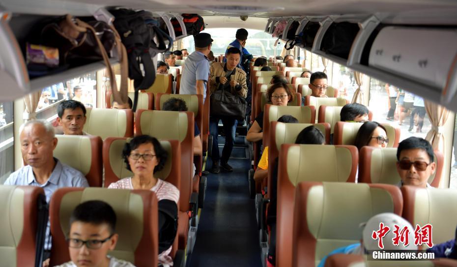 九寨沟县城广场民众排队乘80辆大巴撤离