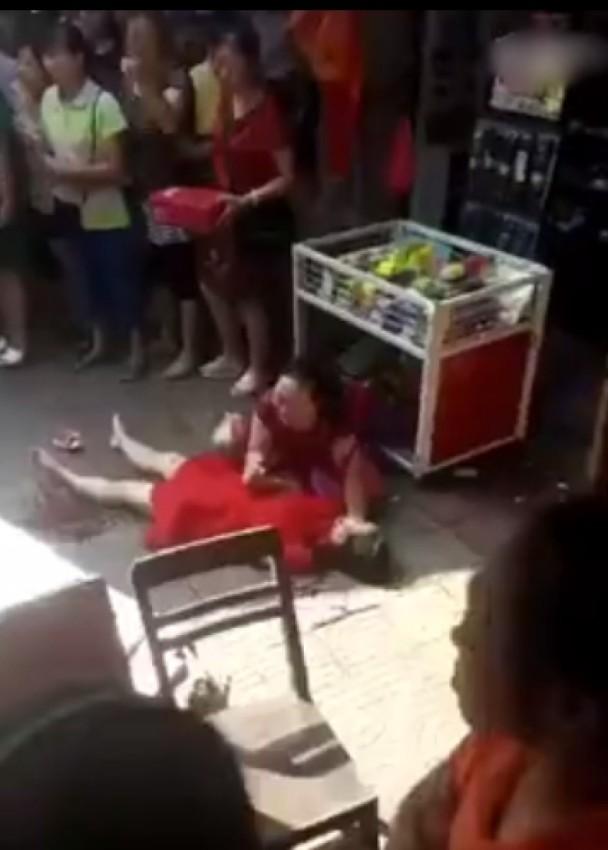现场一位女子躺在地上浑身是血,一动不动,一旁有一位中年妇女正在哭泣,四周已经被警方拉起了警戒线。
