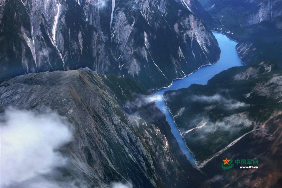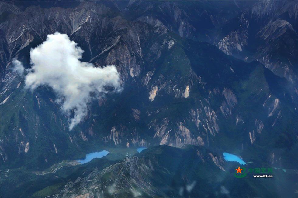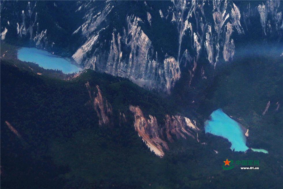 运-9飞机飞抵九寨沟县空域,开始实施航空侦察作业。 8月8日,四川省阿坝州九寨沟县发生7.0级地震,各种救援力量紧急赶赴震区开展救援。8月10日,西部战区空军再次出动运-9飞机,飞赴九寨沟地震灾区空域,重点对九寨沟各沟重要景点和区域进行精准航空侦察。从6000米高空俯瞰九寨沟,青山秀丽,海子幽蓝清澈。本组图是九寨沟震区的航空侦察影像。