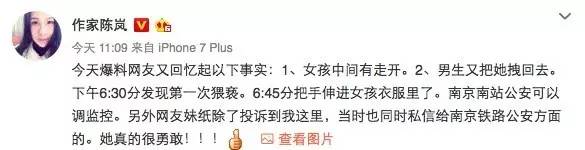 作家陈岚称目击者看到当时年轻男子不止一次 猥亵了小女孩。