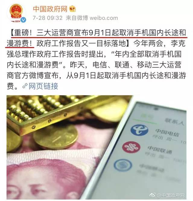 从今年的9月1号起,电信、联通和移动三大运营商取消漫游费。这样一来,以后我们不管到哪里,都可以放心打电话,再也不用办各种各样的漫游套餐!