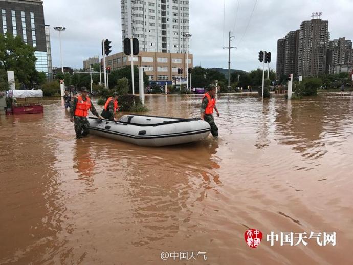 8月13日13时许,武警咸宁支队接到任务后,支队长廖光明率50名官兵,出动车辆6台、救援绳20根、皮划艇3艘,转移受灾群众300余人,转运受损抛锚车辆20余台,疏通城市主干道5条。