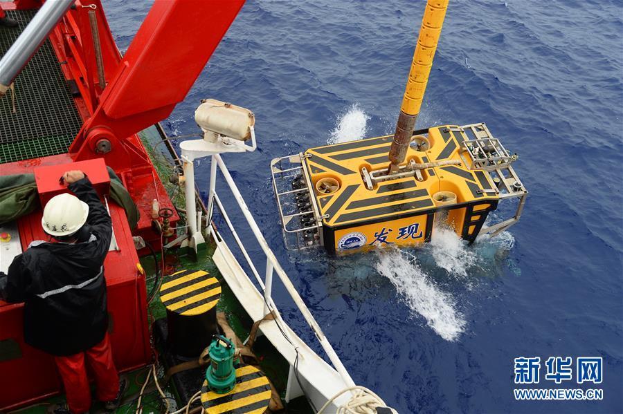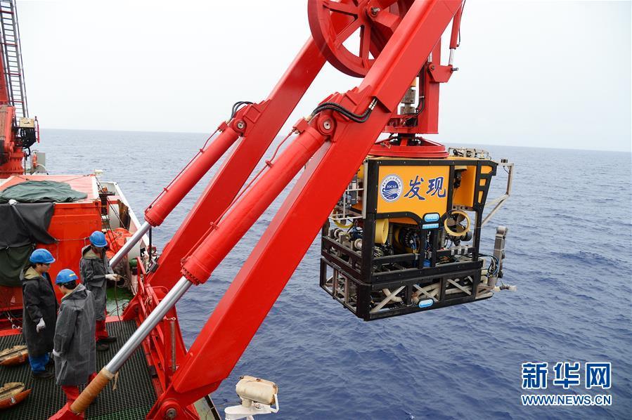 当日,中国新一代远洋综合科考船“科学”号搭载的“发现”号遥控无人潜水器在西太平洋下潜考察卡罗琳海山。新华社记者 张旭东摄