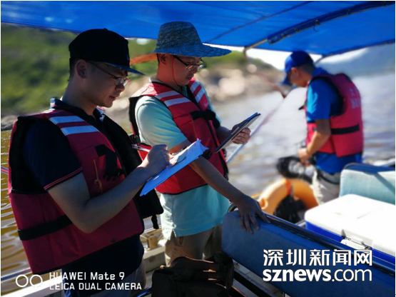 △广东海洋大学深圳研究院科研人员正在进行取样
